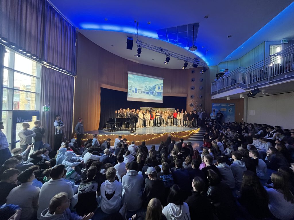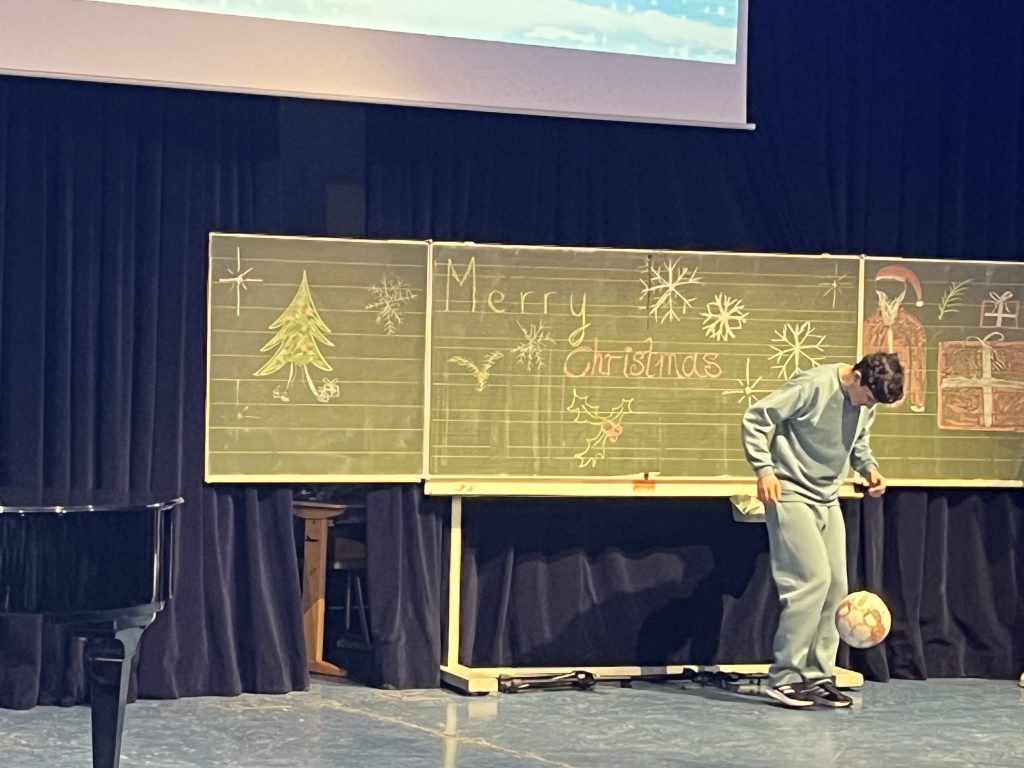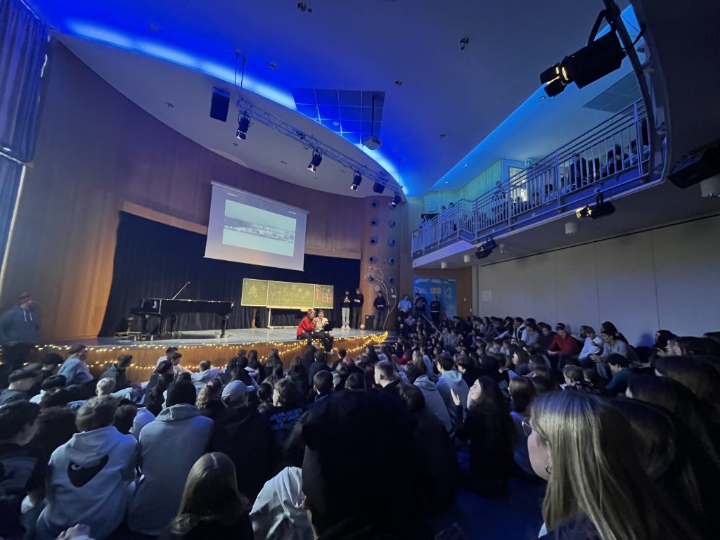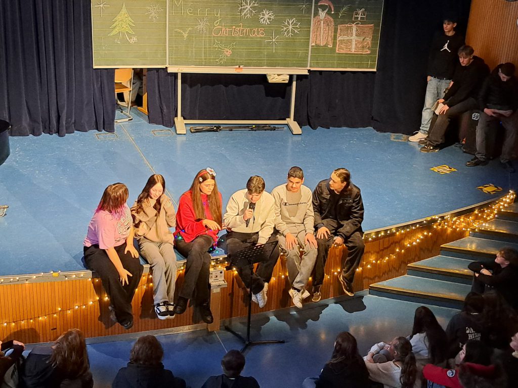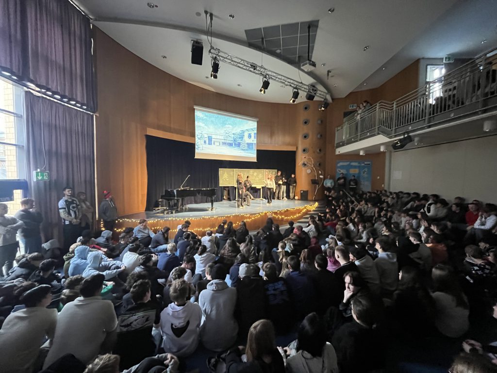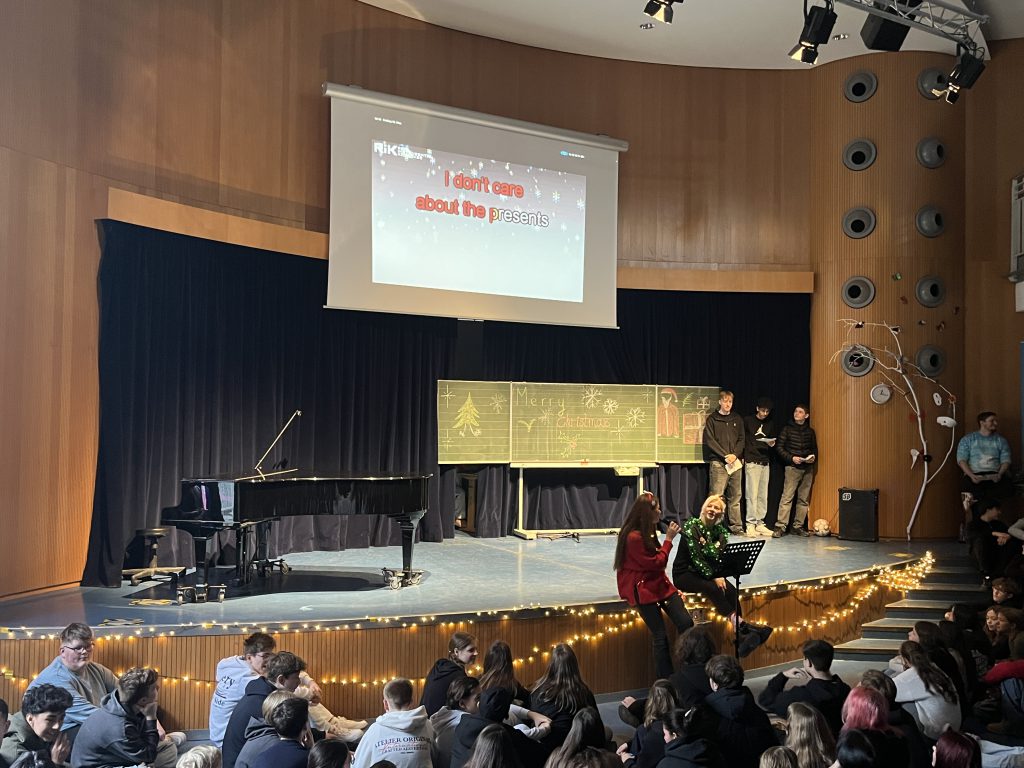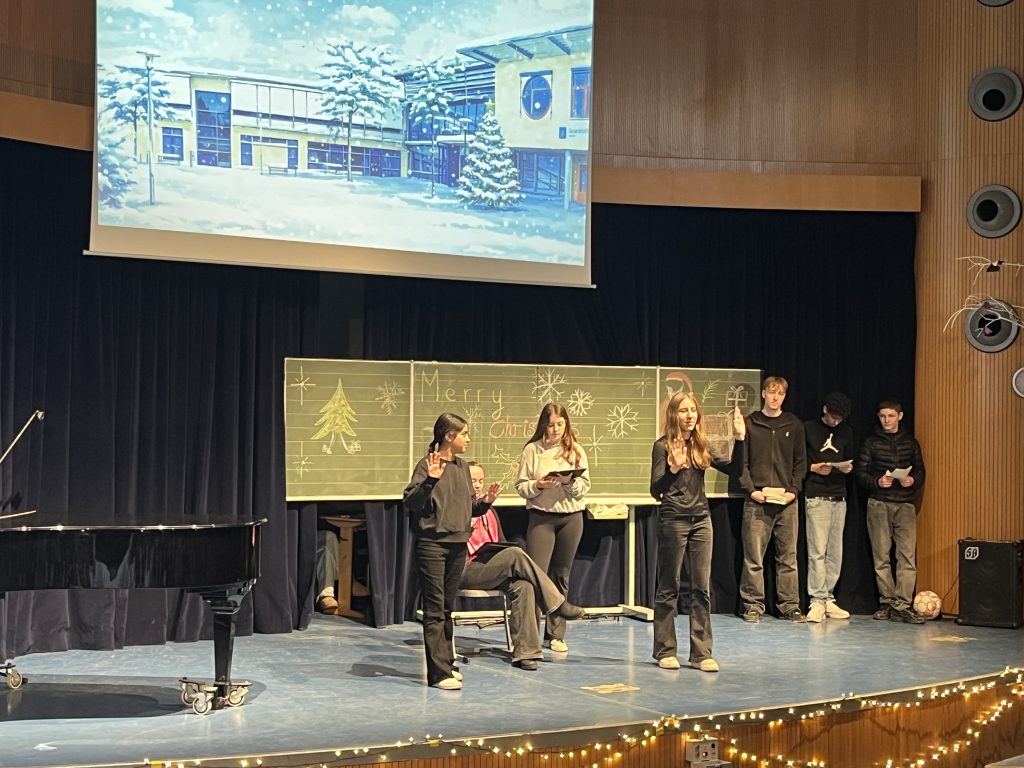 Am 19.12., am letzten Schultag vor den Weihnachtsferien, fand die diesjährige vorweihnachtliche Schul-Assembly statt! Für die Jahrgänge 5-7 fand sie in HNK, für die Jahrgänge 8-10 und unsere Oberstufe in JUE statt, jeweils in den letzten Stunden des Tages. Wie immer bot die Assembly die Gelegenheit, Projekte, Talente und ein kreatives Klassenergebnis vorzustellen – So wurden viele gemeinsame Lieder gesungen, weihnachtliche Musik gespielt oder auch gesungen und Schüler*innen aller Klassen wurden unter anderem für Ihr Engagement beim diesjährigen Schulfest und Tag der offenen Tür geehrt.