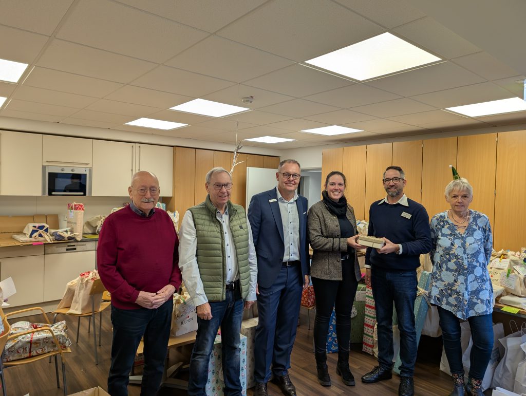 Vertreter der Bürgerstiftung Jüchen sowie der Sparkasse Jüchen, nahmen die Spenden entgegen. Die Geschenke wurden in den vergangenen Tagen mit viel Liebe und Sorgfalt verpackt und nun feierlich an die Empfänger übergeben.
