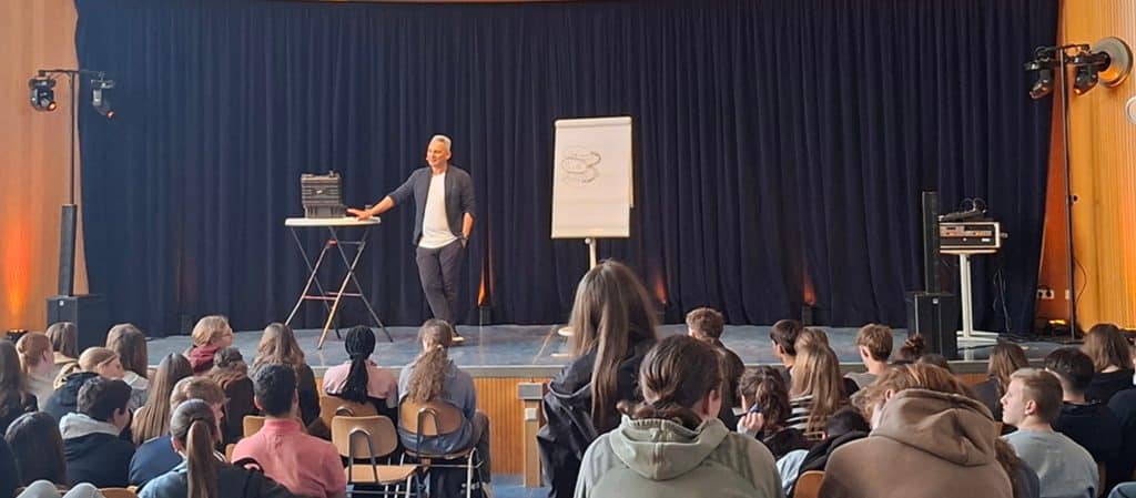 Die Jahrgangsstufen 10, EF und Q1 der Gesamtschule Jüchen erlebten einen besonderen Projekttag. Zu Gast war der Motivationstrainer Osman Citir, der mit praxisnahen Impulsen zu Themen wie Selbstvertrauen, Zielsetzung und Eigenverantwortung begeisterte.In interaktiven Einheiten gelang es ihm, die Schülerinnen und Schüler aktiv einzubeziehen und zum Nachdenken über die eigene Zukunft anzuregen. Bei der Veranstaltung stand Austausch und persönliche Entwicklung im Mittelpunkt. Viele Teilnehmende nahmen neue Motivation und konkrete Denkanstöße mit. Gleichzeitig stärkte der Tag das Gemeinschaftsgefühl innerhalb der Jahrgänge nachhaltig.